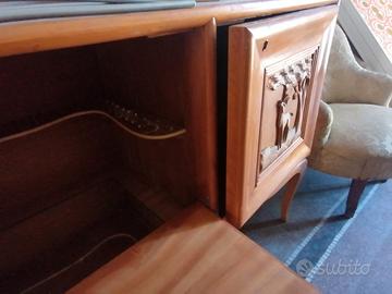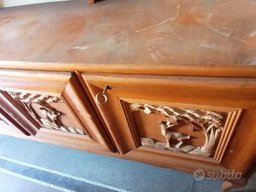 Vendo 2 mobili in legno chiaro intarsiati raffigurazione animali con all'interno angolo bar e sopra piattaia anni 50/60 se interessati chiedere prezzo.