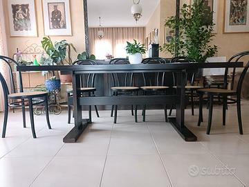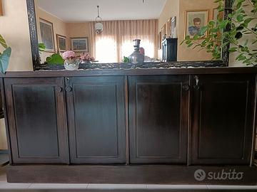 Vendo completo sala mobili in massello anni 90. Credenza: 1,02x49 h.1,54 Specchio: 1,78x1,21 Madia: 1,92x48 Tavolo: 2.10x75 Sedie in legno impagliato n: 8