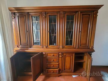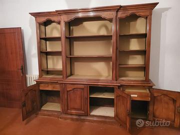 Mobili in massello da soggiorno tutti smontati e stoccati, buone condizioni. Libreria (L.250,h.220,sp.45 cm), vetrinetta (290,230,50) su due pezzi e cassettiera (190,90,47). Vendo tutto insieme, ritiro in capannone zona Renaccio