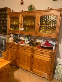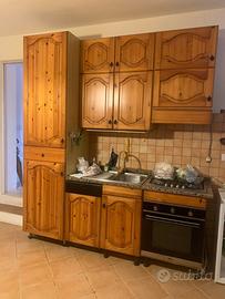 Vendo mobili in pino di svezia. 1 Tavolo 2 panche, 2 sedie. 2 mobili lunghi con mensole come da foto. Una vetrinetta. Una cucina senza elettrodomestici. Ritiro a carico di chi compra.