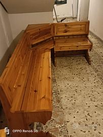 Credenza e panca pino russo, costruita da falegname sul posto per casa in montagna.