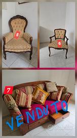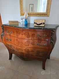 Vendo mobili antichi in legno, ottima qualità e lo stato è quasi impeccabile, tenuti da vero amatore. (vedi numerazione sulle foto) n 1 -Cassettone intarsiato con piano in marmo verde in stile Luigi XV. € 500 n 2 -Cassettone a ribalta (o Trumeau) stile XVIII sec. € 500 n 3 -Mobile legno di noce con vetrina, ante e cassetti (libreria). € 350 n 4 -Credenza o Madia in arte povera con ante e cassetti. € 200 n 5 -Poltrone stile Luigi XV (2 pz) € 80 n 6 -Poltroncina stile Luigi XV (2 pz) € 60 n 7 -Venduto n 8 -Cristalliera in legno stile Luigi XV. € 200 n 9 -Vetrina angolare in legno stile Luigi XV. € 150 Ultima foto, ARMADIO a 7 ante stile veneziano. € 350 Per il valore a nuovo potete verificare tranquillamente sul web!!! Resta inteso che, l'acquisto in blocco beneficerà di miglior trattamento. Preferibile primo contatto via mail, grazie. P.S. Eventuali spese di spedizioni e/o trasporto sono comunque a totale carico dell'acquirente.