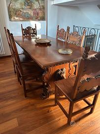 Vendo a corpo mobili in stile medievale, ben tenuti, privi di tarlo composti da vetrinetta, tavolo e sei sedie piccolo mobile adibito a posa TV. (senza suppellettili fotografati!!)