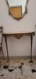 Vendo mobili per ingresso modernariato anni 60 in ottime condizioni. Il mobilio comprende: 1 consolle in ottone e piano in onice; 1 specchiera in ottone; 1 attacapanni in ottone; 2 sedie di ottone imbottite No spedizione