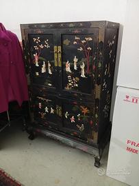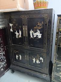 lavorazione vecchia Cina con pietre dure e madreperla in rilievo .