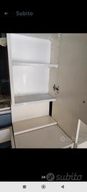 vendo mobile arredo colore bianco per fare composizione in un bagno (appoggio marmo cm.105). I mobili furono costruiti dan un artigiano: porta lavello con 2 ante da cm 35,tot 70, ripiano laterale da cm 35 con antina e cassetto, rialzina con ripiani e anta H 75 * 35, colonna 195*35 con antina a vetro opaco, ripiano a vista e antina sotto. È disponibile anche il vetro: alto cm 105 con larghezza cm 75 e fin anche il top di marmo con rialzatina dietro e aggiungo lavandino Dolomite . Al mercatino li trovi a 700€! si può visionare perché tutto funzionante e in ottimo stato. Il montaggio è semplicissimo. Il prezzo si tratta ma di poco. Potrei aiutarti nel trasporto ma in zona.