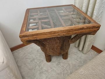 vendo in blocco, tavolo allungabile di 1m.40 che diventa 1m.80 oppure 2m.20 con 6 sedie in legno, una lampada, un tavolo composto da un tronco d'albero e bambù con vetro misure 70x70, n.4 cubi in legno 50x50.