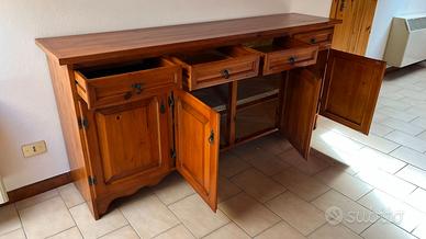 Due mobili in legno con cassetti e 4 ante (195,5 lunghezza; 46 larghezza, 90 cm altezza)