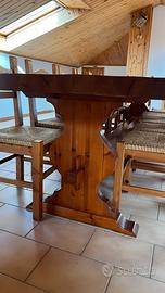 Tavolo in legno con 12 sedie impagliate in perfette condizioni (299,5 lunghezza; 88 larghezza; 75 cm altezza, spessore tavola 6 cm)