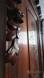 Armadio due ante restaurato con interno pronto uso, anta destra tuttopiani, anta sinistra appendiabiti. Ripiano lungo in alto e due cassetti.