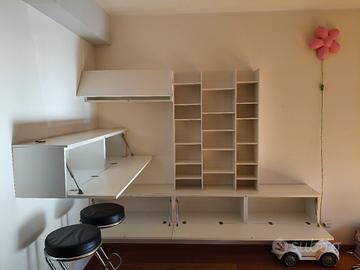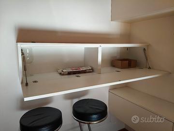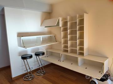 Vendo parete attrezzata composta da 4 moduli sospesi con apertura a ribalta + libreria 2 moduli grandi 150x35x32 2 moduli piccoli 90x35x32 libreria 90x128x25