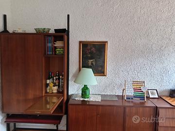 Mobili parete attrezzata e armadio stile originale svedese/danese anni 70 ferro nero e legno teak impillacciato buone condizioni