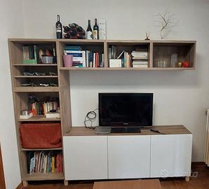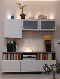 Vendo a 400€ trattabili cassettiera Hemnes bianca, due pareti attrezzate (una con cassetti e ante in vetro; una con ante e ripiani a giorno), un tavolino da salotto in metallo nero con contenitore e ripiano in legno massiccio. Lo smontaggio e il trasporto sono a carico dell'acquirente.