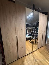 Vendo cameretta completa in buone condizioni, ideale anche per arredo camere in affitto per studenti. Composta da: Armadio a sei ante Mondo Convenienza; Letto a soppalco IKEA (senza materasso); Letto in ferro da una piazza e mezza con materasso incluso; Piano scrivania con due cavalletti di appoggio; Due comodini IKEA a due cassetti. I due scaffali neri presenti in foto non sono in vendita. Smontaggio e trasporto a carico dell'acquirente.