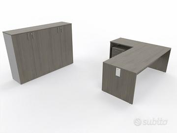 Arredo operativo composto da: scrivania mis.180x80x75h con allungo laterale mis.80x60x75h cassettiera su ruote 3 cassetti con serratura mobile mis.180x45x130h ante battenti con serratura e top unico superiore Possibilita di finiture diverse .Fulvio 3351215825