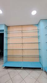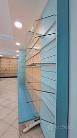 Inoltre ci sono 2 espositori da vetrina o da porre al centro del negozio per separare gli ambienti e/o riempire gli spazi. Entrambi sono dotati di ruote che consentono un facile spostamento (sono le ultime due foto).