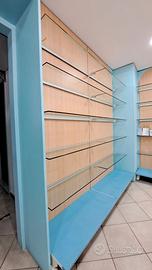 Per cessata attività, vendo mobili costruiti su misura nel 2009 ma in condizioni eccezionali. Possono adattarsi a diverse pareti poichè sono 15 moduli intercambiabili formati da pannelli in legno e ripiani in vetro.