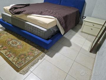 Camera da letto composta da letto contenitore in Alcantara blu + materasso+ due comodini a cassetti bianchi + Como a cassetti e anta stesso tipo dei comodini+ tre tappeti scendiletto anni 50+ poltrona in Alcantara come da foto.