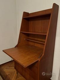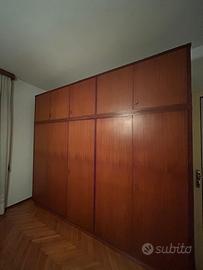 Mobili per camera da letto . Letto singolo con rete , mobile con cassettiera e scrittoio a ribalta, armadio a cinque ante, poltrona in velluto (mobili anni 70) (mobili da smontare e trasporto a carico di chi ritira)