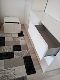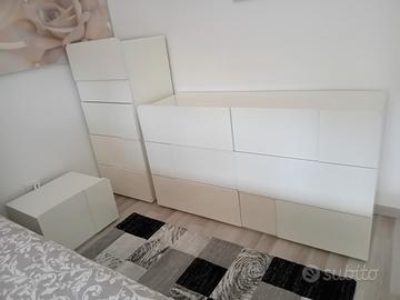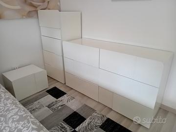 2 comodini ,1 como con 6 casette, un settimanali con 5 casette. bianco laccato.