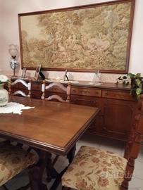 Mobili per camera da pranzo: cristalliera, maida, tavolo con sei sedie risalenti al XX secolo tenuti in modo maniacale