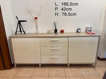 Vendo vari mobili dal design moderno e minimale, ideali per soggiorno, camera da letto o ingresso. Finitura elegante in legno chiaro (effetto rovere/frassino) abbinata a pannelli panna lucido. Tutti i mobili sono usati ma in ottime condizioni. Smontaggio e trasporto a carico dell'acquirente.