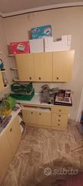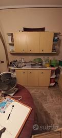 Vendo 2 mobili come foto con ante e pensili: uno larghezza 180cm + smussature laterali a giorno sopra e sotto e uno larghezza 150 cm con parte a giorno sulla sinistra sopra e sotto. Il tavolo tondo ha diametro 110cm e con prolunga di 34cm che diventa ovale di 144x110cm e altezza 76cm