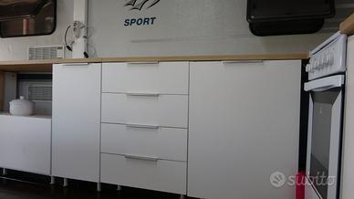 Mobili da cucina completa di, 2 mobili da cm 60 x 40 altezza 80 con anta , 1 da cm 40x 40 altezza 80 con anta, 1 cassettiera , 4 cassetti da cm 60 , misure cassetto 55x33x13, piedini regolabili da cm.9 a 12, vendibili anche a singoli pezzi.