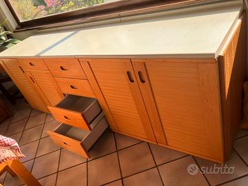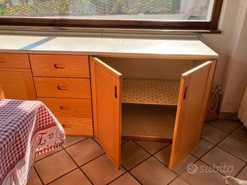 basi mobili per cucina con antine in vero legno e top grigio. con cassetti e asse da stiro estraibile . profondità cm.60 h. 80 lunghezza totale cm.228. consegna a mano a Cantalupa (to)