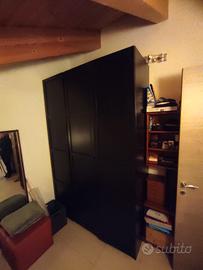letto alla francese con doghe 208 x 145 di larghezza armadio nero 3 ante 150 x 60 x 237