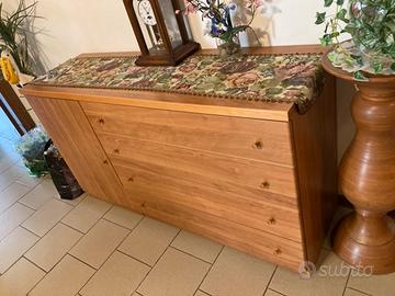 Vendo mobili per soggiorno molto ben tenuti - Un tavolo quadrato apribile - 6 sedie - Un mobile vetrina con ante e cassetti - Una cassettiera