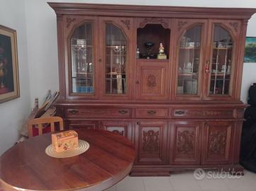 Vendo tavolo (no sedie) e mobile con vetrine, in foto. Dimensioni mobile Base: 266x50, h 104, top: 260x42 h 125 cm Dimensione diametro tavolo (allungabile) 112 cm Zona Tomba di Nerone