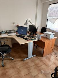 N. 3 mobiletti bassi con ante e chiave - n 1 mobile alto con ante superiori e schedario cassette inferiori - n. 6 poltroncine -n.1 tavolo per riunioni -n.1 cassettiera - n.1 scrivania con estensioni applicabili a dx e sx - n 1. Scrivania con penisola - n 1. Poltroncina da scrivania con ruote - n. 1 mobiletto aperto senza ante -