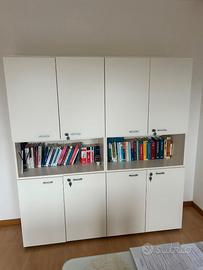 Vendesi armadietti per ufficio con parte aperta libreria (3 moduli da 90x45 h 1,95) e scrivania (140x80)