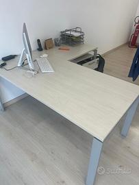- n. 2 SCRIVANIE con gambe in alluminio a L 160x80x60 con cassettiera 41,5x55x60