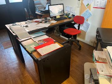 Tutte le scrivanie con sotto passaggio cavi per corrente e cavi dati.