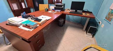 1) Scrivania con lato esterno lievemente arrotondato: Larghezza 105,00 cm- lunghezza 200,00 cm- cassettiera mobile con 3 cassetti; penisola per computer agganciata alla scrivania: larghezza 60,00 cm- lunghezza 100,00 cm.