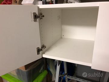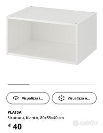 Vendo due mobili Platsa con ante Fennes pari al nuovo. Ognuno misura 80 x 55 x 40 cm. Poiché li avevo disposti vicini presentano lateralmente un foro per tenerli uniti come si vede in foto. Prezzo complessivo 50€.