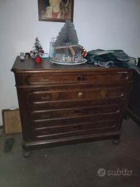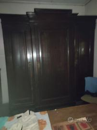 Vendo in blocco o separatamente per sgombero abitazione mobili della prima metà del 900 da restaurare: un orologio a pendolo, 2 poltrone da cucina, una credenza e un tavolo da cucina, 2 armadi, 5 cassettoni, 3 letti, una poltroncina e una sedia da camera, uno specchio e un quadro. Da vedere e ritirare a proprio carico se interessati. La richiesta si riferisce all' intero lotto.