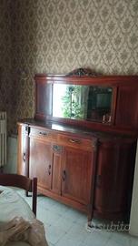 Camera da letto primi '900 con marmo di rifinitura su comodini (2) e comò, armadio guardaroba, tavolo con 4 sedie impagliate e mobile sala da pranzo stile primi '900 rifinito con piano in marmo, libreria-mobile letto (quest'ultima regalo)