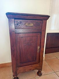 • Comodino di inizio '900 in legno di noce con incisioni. 80 cm × 44 cm × 33 cm