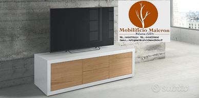 Porta tv in legno bicolore Bianco e Finitura Naturale Cod 256M