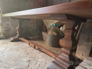 La richiesta è di € 600 per entrambi oppure € 400 per la credenza e 200 per l' angoliera. Eventualmente ho disponibile anche un tavolo con sei sedie della stessa tipologia dei pezzi sopracitati, cioè rustico in legno massello di metri 2,5 per 80 cm, mentre le sedie hanno anche un decoro di figure intarsiate a mano sullo schienale, il tutto al prezzo di € 700 tavolo e sedie, voglio anche specificare che non vendo il solo tavolo senza sedie, al massimo le sole sedie in blocco a un prezzo da concordare.