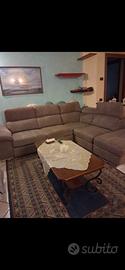 sala con tavolo in vetro di cristallo con sostegno in legno e ferro battuto, 6 sedie,divano grande vetrina ad angolo tavolinetto e vomo'grande,vendibile anche separati