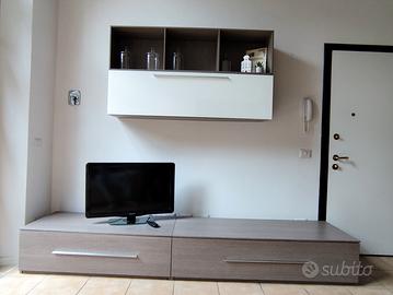 Mobili per sala composto da mobile basso e due pensili. In ottime condizioni. Situate a piano terra.