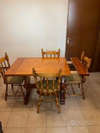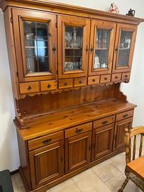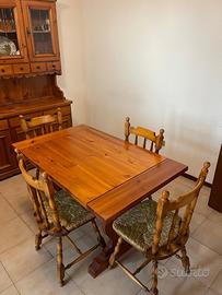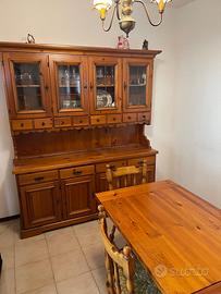 Mobili sala da pranzo in ciliegio: - Credenza in cigliegio Deltongo: lunghezza 1,84 - altezza 2,12 - profondità 50 cm - Tavolo: 1,30 X 80, allungabile. - 4 sedie in legno con seduta in paglia. - Smontaggio e trasporto a carico dell’acquirente.Palazzo dotato di montacarichi
