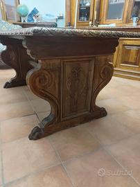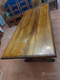 Vendo mobili da sala in noce massello di manifattura artigianale. Ritiro in loco. E' in corso la valutazione per un corretto valore ma si valutano proposte. DIMENSIONI CREDENZA: 310x65x275h DIMENSIONI TAVOLO: 200x90x80h DIMENSIONI PORTA TV: 100x46x102h