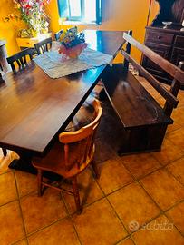 Vendo salotto completo in vero legno massello di noce Tavolo lungo 3metri e panche Vetrina e credenza