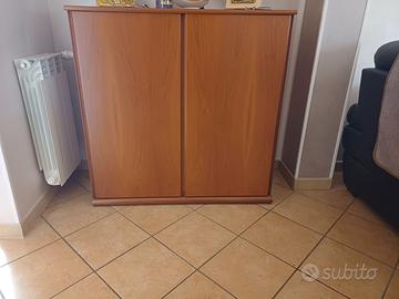 Vendo Mobili Misura Emme - legno ciliegio buono stato, composti da parete salone, madia due ante, comodini molto capienti e comò 3 cassetti; include tavolo 1,60 legno mt allungabile 40-40 cm. + 4 sedie foderate in pelle ottimo stato. Vendibili anche per singola stanza (Comò + comodini o Tavolo + parete + madia)