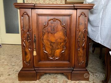Mobili salotto anni 70 in stile CLASSICO risalenti ai primi anni 70 con inserti in radica , tre pezzi, molto eleganti e signorili, per INTENDITORI.